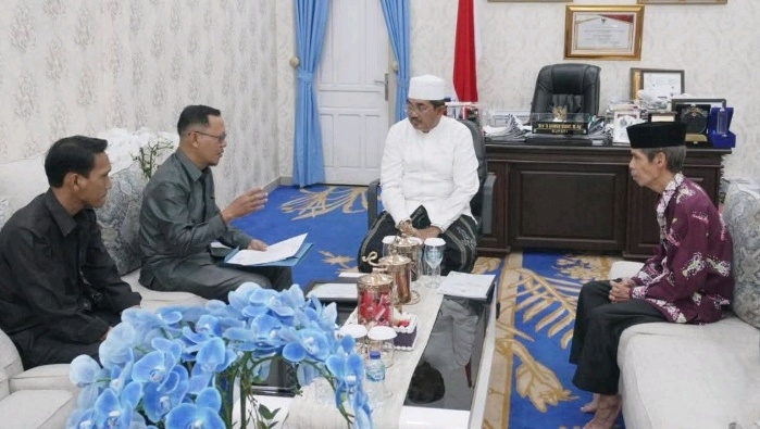 TANJABBARAT, BULENONEWS.COM – Bupati Tanjung Jabung Barat, Drs. H. Anwar Sadat, M.Ag. menerima kunjungan silaturahmi Badan Amil Zakat Nasional (Baznas) Tanjab Barat yang menyerahkan Piagam Penghargaan Baznas Awards 2025 sebagai Kepala Daerah Pendukung Gerakan Zakat Indonesia. Dalam kesempatan yang sama, Baznas juga menyampaikan laporan hasil resolusi penguatan tata kelola zakat dari Rakornas Baznas 2025 serta laporan kinerja semester I tahun 2025. Kegiatan tersebut berlangsung di Ruang Transit Rumah Dinas Bupati, Senin (8/9).