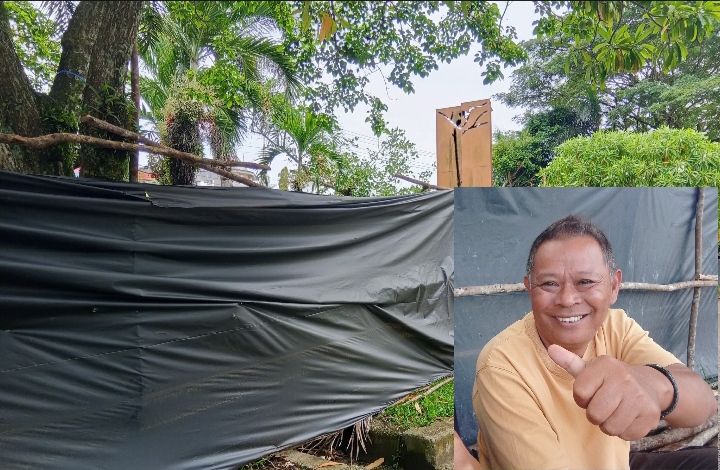 BANGKO-BULENONNEWS.COM. Heboh Pengamanan Proyek Pembangunan Ruang Terbuka Hijau eks Taman PKK Kota Bangko Kabupaten Merangin Jambi yang terbuat dari Terpal plastik warna hitam viral di media sosial.