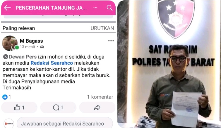 Akun @M Bagass: Dilaporkan karena mengunggah tuduhan serius di Grup Facebook Tanjung Jabung Barat. Akun ini secara terbuka meminta Dewan Pers menyelidiki Searah.co, menuding media tersebut melakukan pemerasan dan mengancam menyebarkan berita buruk jika tidak dibayar.