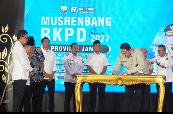 JAMBI-BULENONNEWS.COM. Bupati Merangin, M. Syukur, menghadiri Musyawarah Perencanaan Pembangunan (Musrenbang) Rencana Kerja Pemerintah Daerah (RKPD) Provinsi Jambi tahun 2027 yang berlangsung di Auditorium Rumah Dinas Gubernur Jambi, Rabu (15/04).