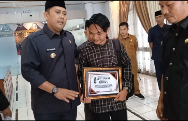 Sandra Wandi, aktivis kampus gegerkan DPRD Merangin usai menyerahkan sertifikat Terbaik I. Sertifikat tersebut diberikan atas kendaraan dinas menunggak pajak sebanyak 628 kendaraan.